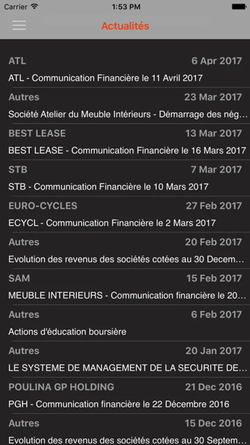 - Consulter les 20 dernières informations sur les sociétés en relation avec le marché de la bourse de Tunis.