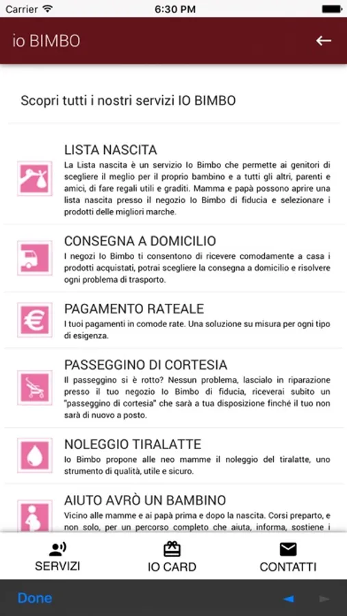 IoBimbo è semplice da utilizzare e ti permetterà di avere sempre a portata di mano tutte le informazioni sul tuo punto vendita preferito Io Bimbo.