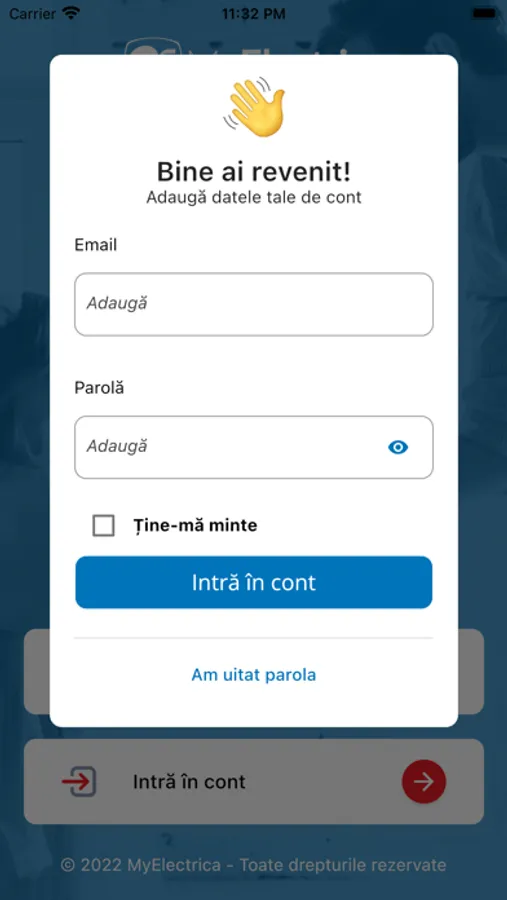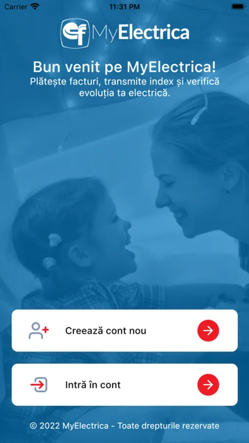Pentru autentificare trebuie sa introduci userul si parola pe care le utilizezi la conectarea in portalul de clienți. Daca nu ai cont, poti crea unul direct in aplicație sau utilizând portalul www.MyElectrica.ro
