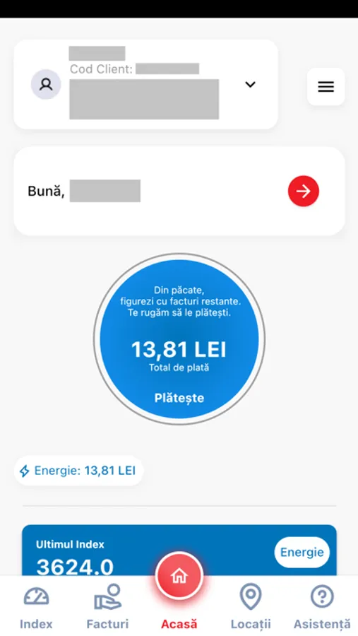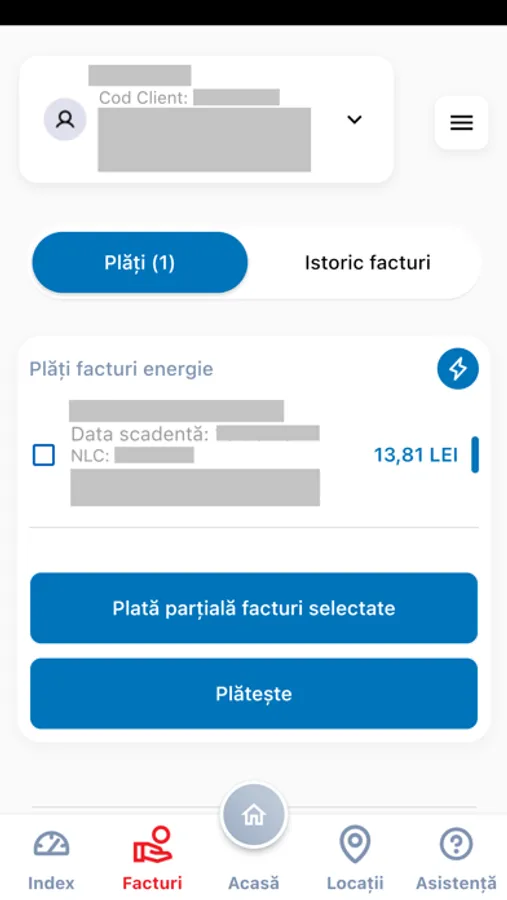 - Vizualizarea graficului de consum, a istoricului plăților efectuate