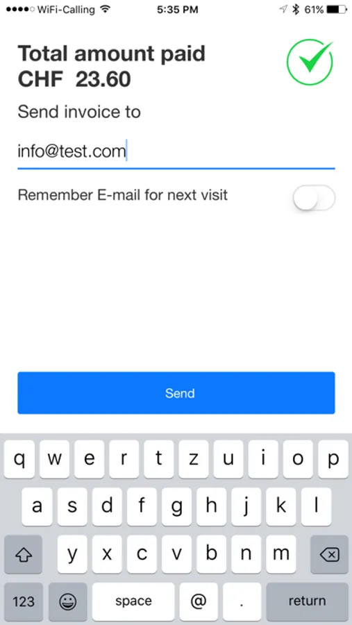 After the checkout the client can enter her email address directly on the display in order to receive a digital version of the invoice. The advantage for merchants is that the client display cannot only display information but also be used as input device.