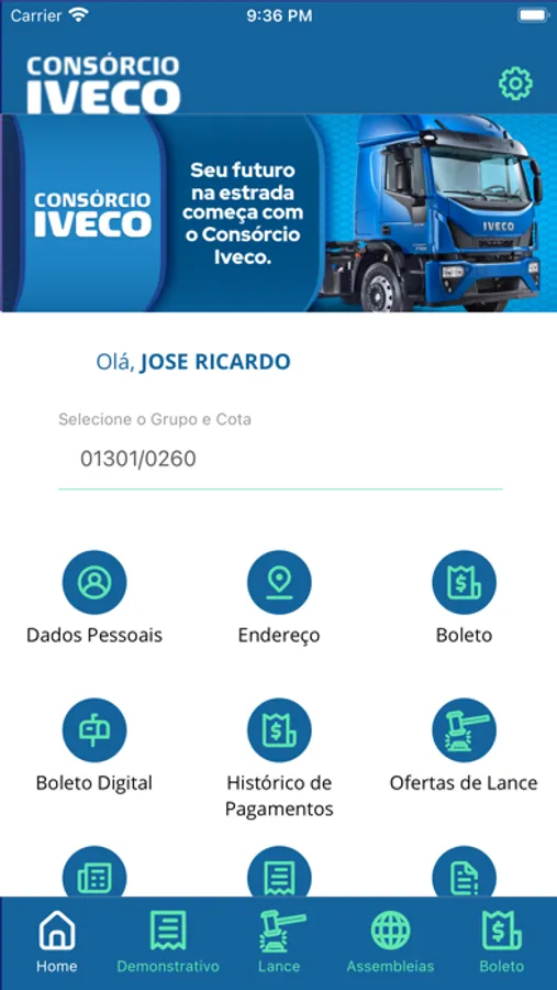 O aplicativo do Consórcio Iveco traz todas as funcionalidades para a gestão do grupo de consórcio de forma rápida e segura. Confira as principais de acordo com o perfil: