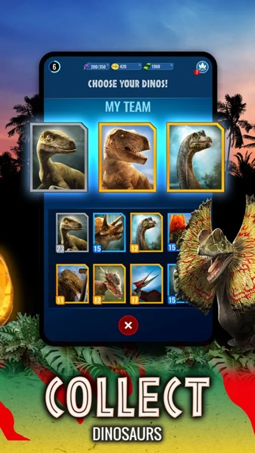 Discover your world and collect epic dinosaur DNA to level up and create hybrids in the lab. Craft the perfect strike team and take them into battle in real-time player-vs-player matches. Challenge your friends to win exclusive rewards!