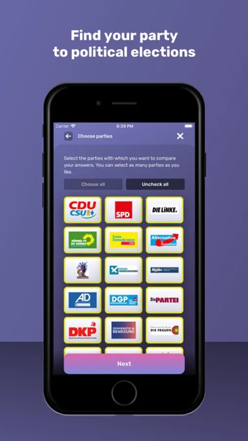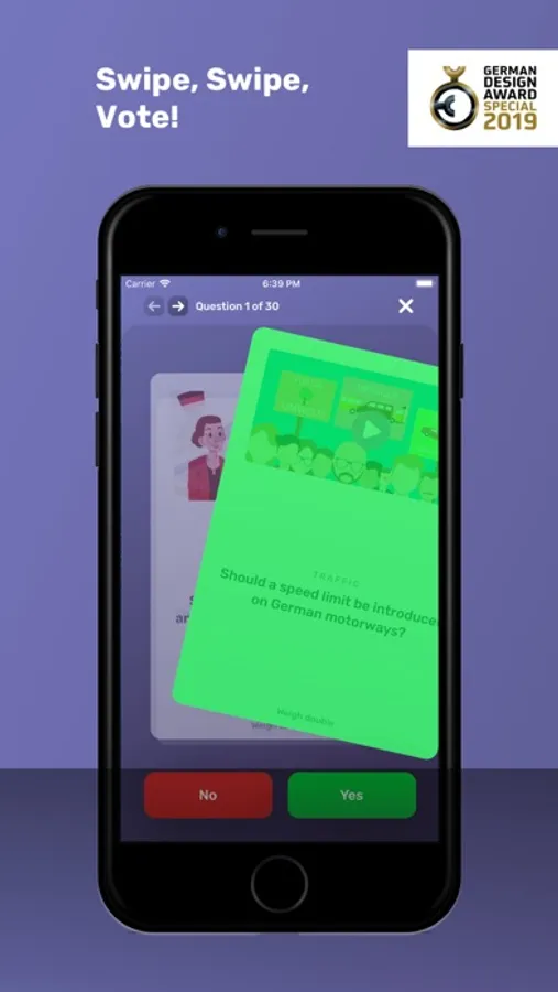 With our VoteSwiper you can easily find suitable parties in political elections. Answer questions on current topics via Swipe and we will tell you which parties match your political views.
