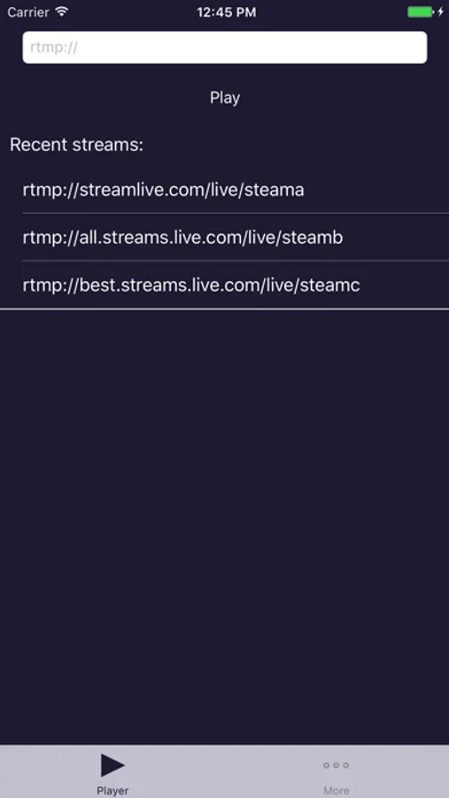 Play Stream is a stream player which supports play streams via RTMP protocol.