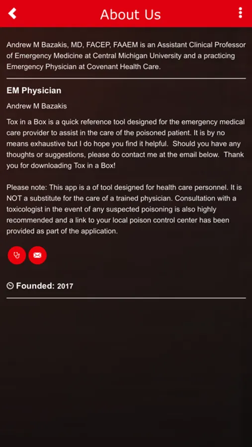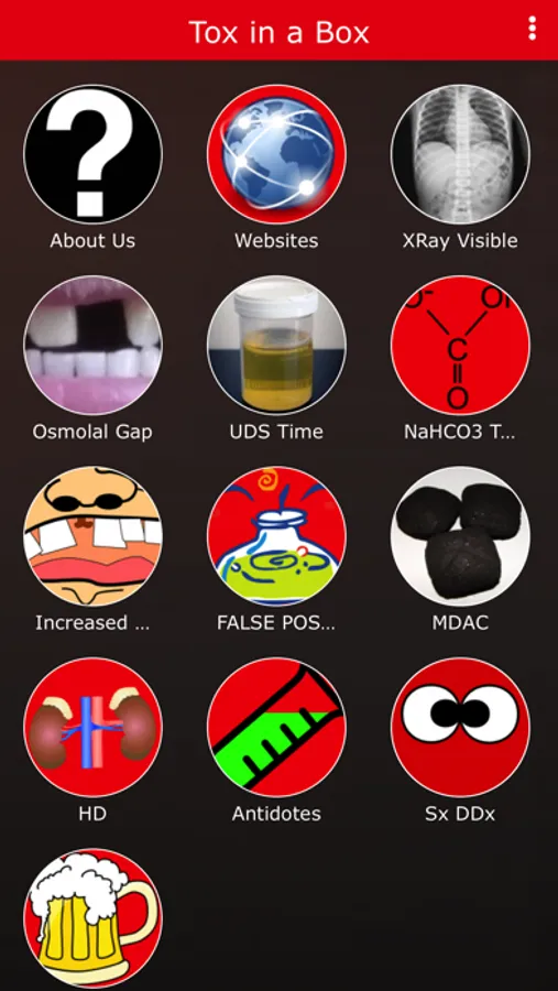 Tox in a Box is a tool designed for clinicians in the emergency department setting to assist in the care of the poisoned patient. Originally designed for emergency medicine residents in a hard copy format, this application is useful to practicing clinicians at all levels. It is NOT a substitute for toxicology consultation but rather tool to assist in thinking about the diagnosis and treatment of the poisoned patient.