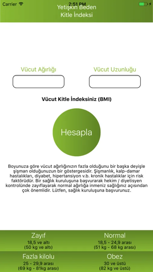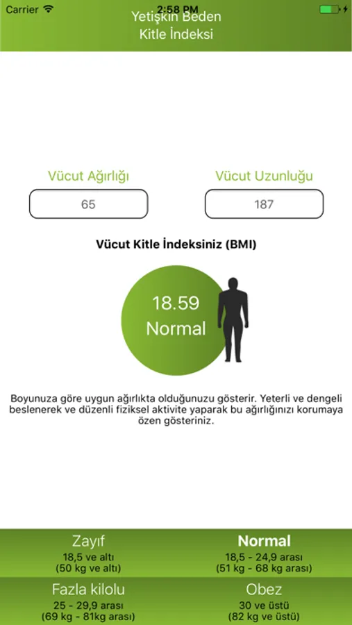 Uygulama farklı yaştan insanlar için tasarlanmıştır. Vücut kitle indeksinizi hesaplayın, sağlıklı kalın!