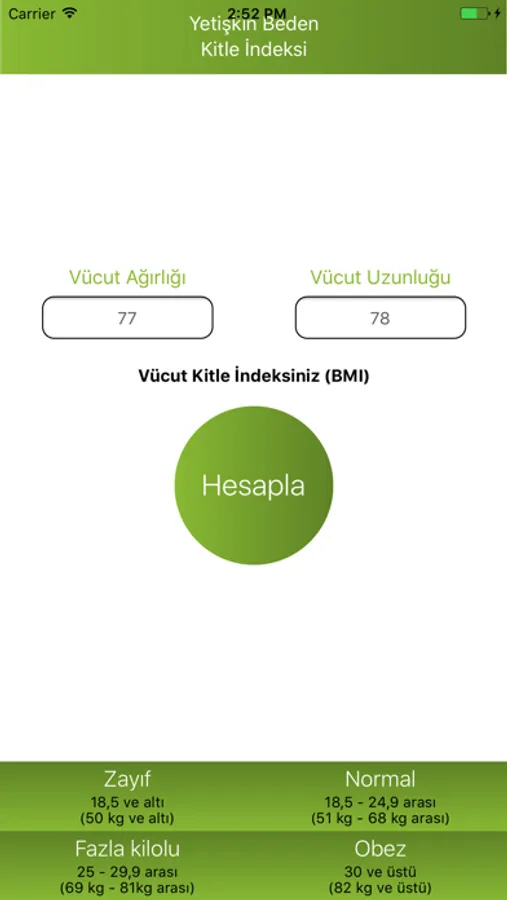 BMI(vücut kitle endeksi) hesaplama, vücut yağ yüzdenizi ve ideal kilonuzu öğrenmenizi sağlayan ücretsiz bir uygulamadır.