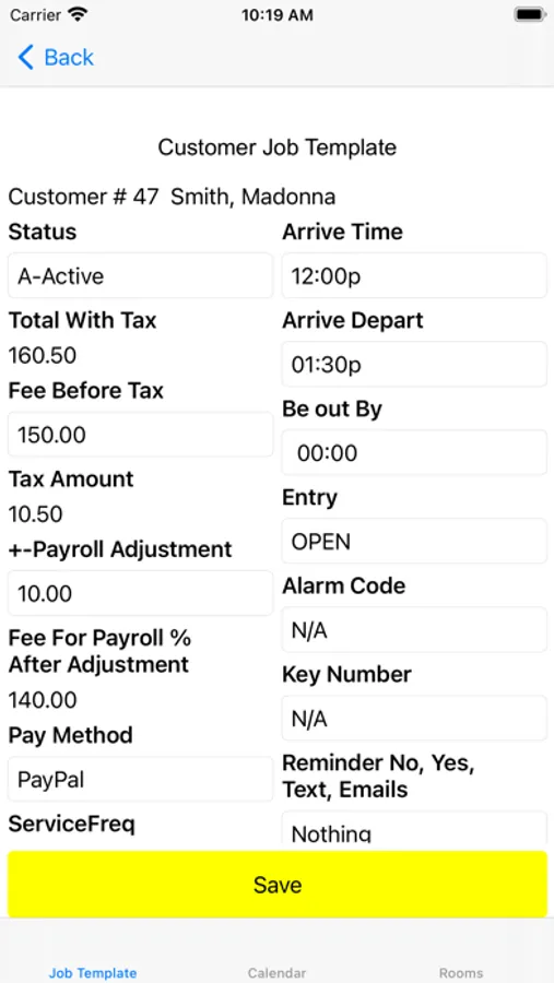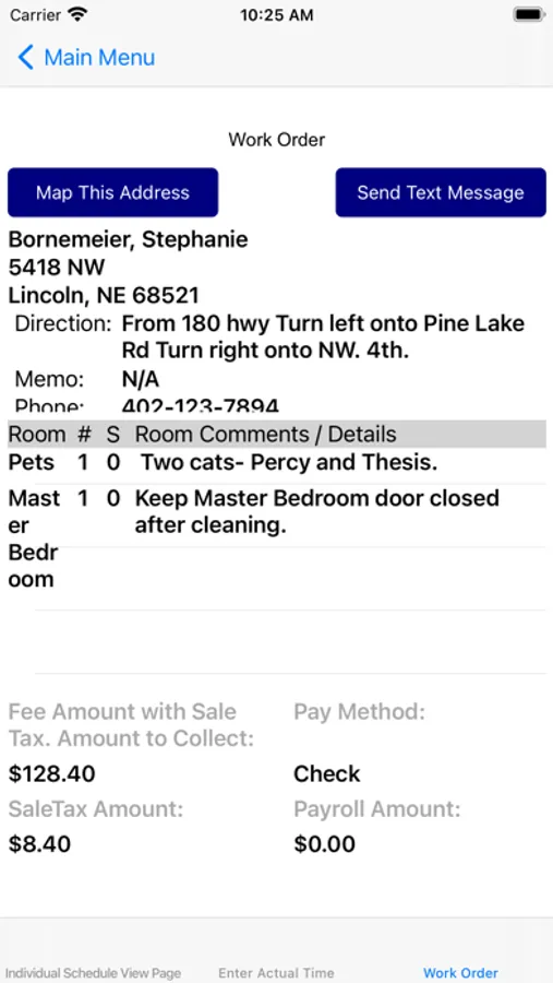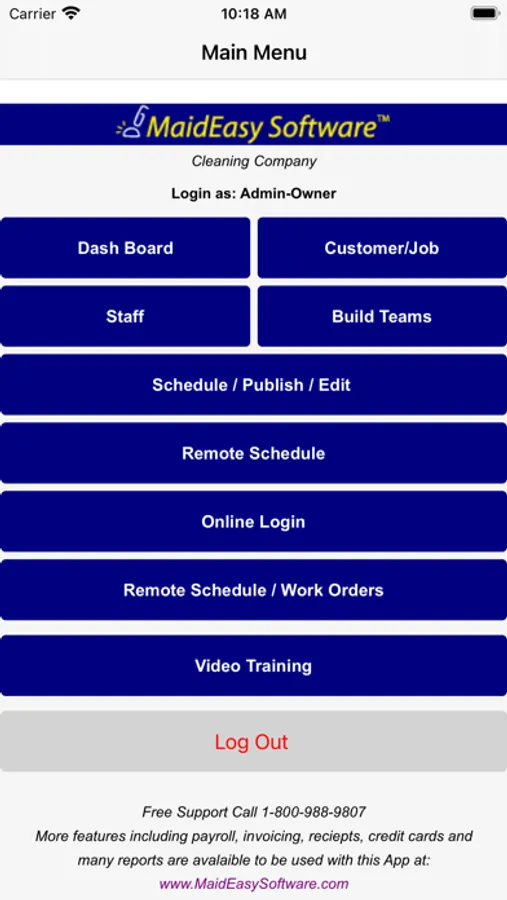 Each staff member can have their own login information and password for access to the app. They can see their schedule for the day, view the specific work order details about that customer’s job. Also, if the owner elects, our exclusive time sheet function can be used. This allows the cleaning person to enter beginning and ending time for each customer’s job. This helps the owner see where the employees are at and help with the daily task of payroll.