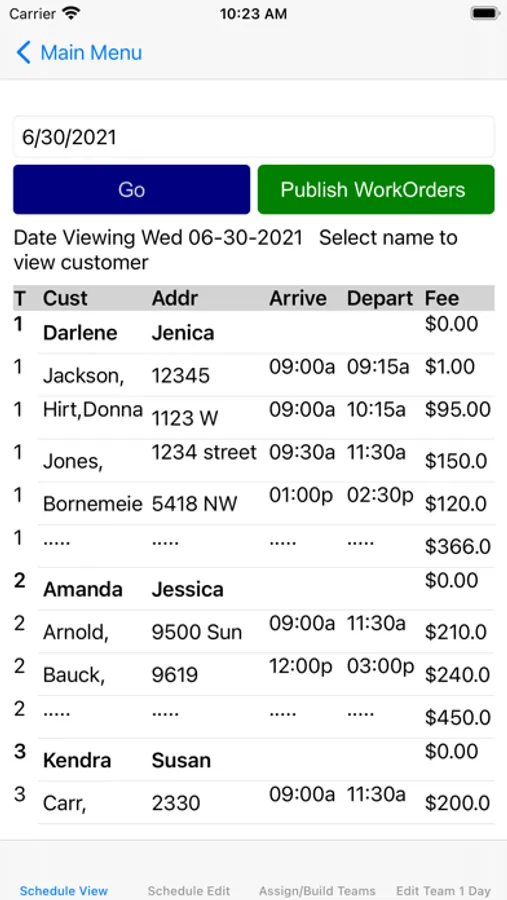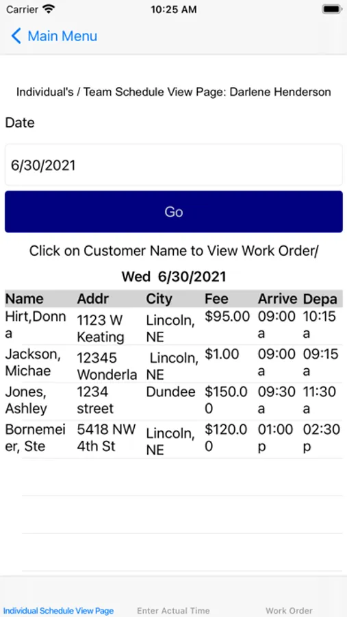 • Employee access for each staff member to see their schedules for the day and log the in and out time on each job