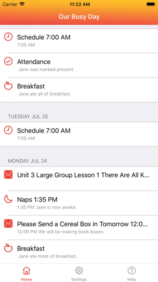 "Our Busy Day" helps communication between parents and care providers, making it easy for a care provider to inform parents when they meet the basic needs of a child, such as meals, naps, and diapering. They can share pictures and comments with parents throughout the day, as well as store these in a child's digital portfolio. Parents can send replies to messages sent by providers.
