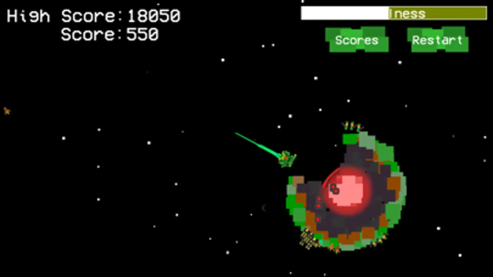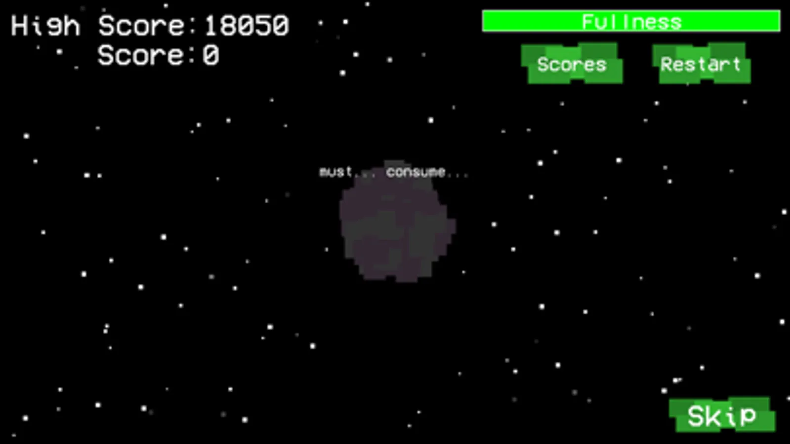 You’re a giant space monster who woke up from a deep slumber that cannot be quenched! All you can do is devour nearby worlds by destroying their cores. Watch out! There are people living on these worlds, and they’re not too happy that you’re destroying them all. Most of them will avoid you, but some worlds have fearsome soldiers that can do some damage.