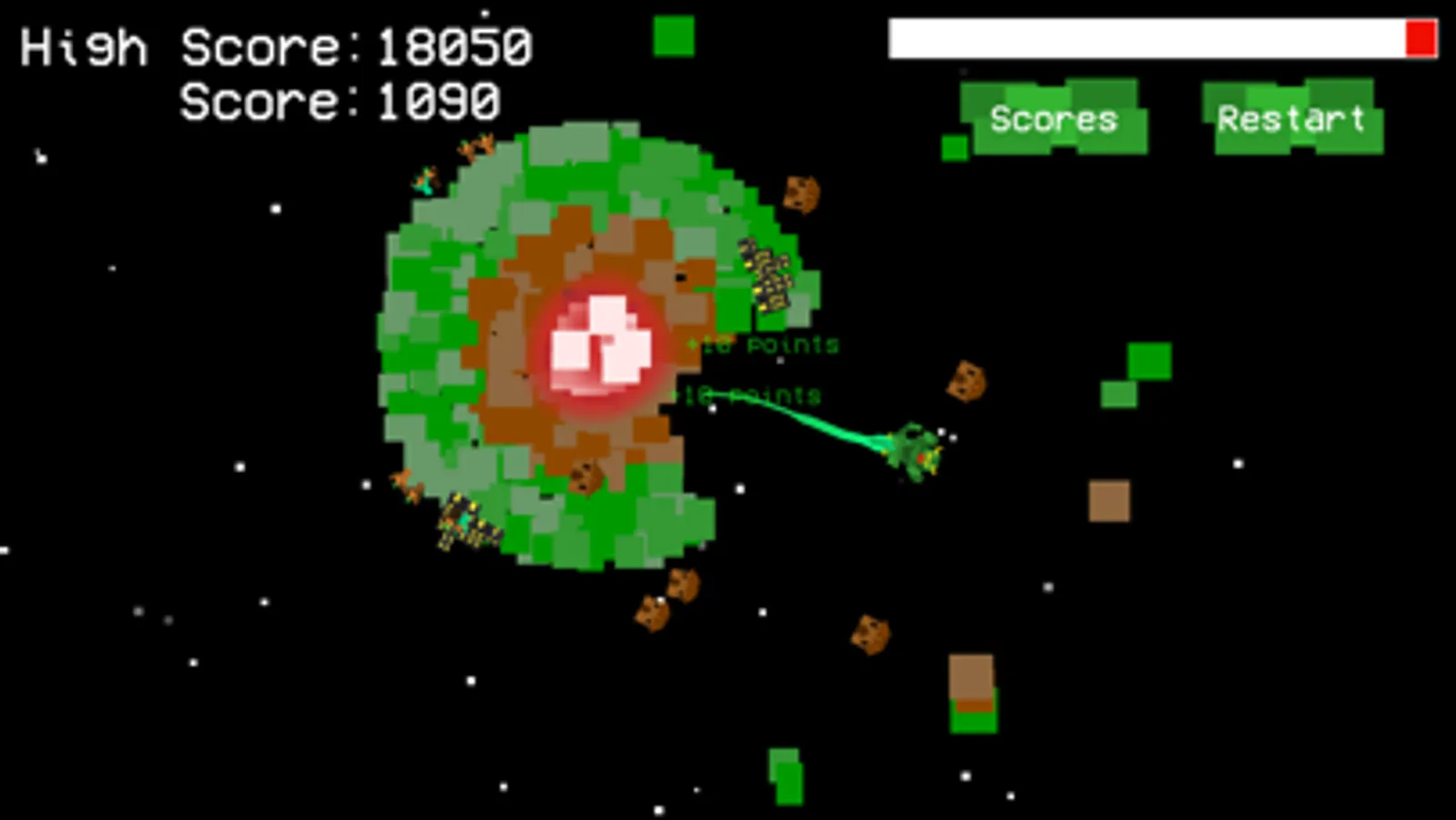 Once you hit the very core of the planet, it will explode! Everything on it will die, you’ll rack up more points, and best of all, you’ll satisfy a bit of your hunger. The only way to stay alive is to keep eating!