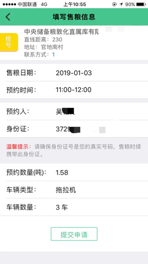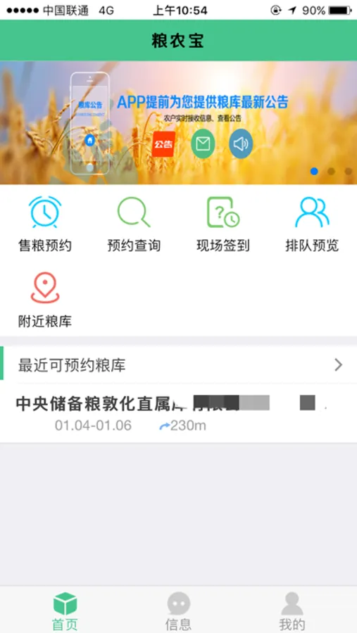 该APP是一款售粮预约软件。收储库点在实际收购工作中,特别是在收购高峰期,经常出现售粮农户集中卖粮、排队卖粮的情况。该APP就是为解决农户集中售粮等待时间过长的问题,以手机移动应用的方式提供售粮预约、信息查询等信息服务。