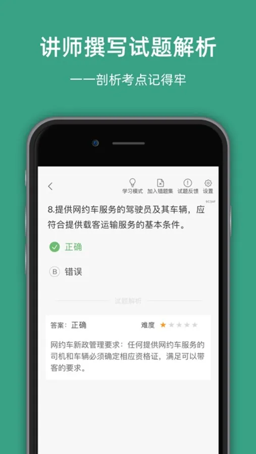 宁波多家网约车公司认可的网约车资格证考试学习APP,考试题库实时更新,支持离线使用,界面干净清爽无广告。全国公共科目题库+宁波市区域题库(同步更新),严格遵循考试大纲出题规则,模拟全真考试环境体验,试题提供详细解析,让你理解记忆,吃透考点,帮助您通过考试。