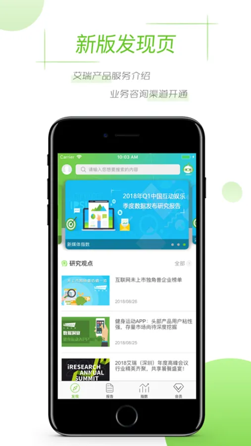 秉承着“生活梦想、科技承载”的理念,为了打造职业化赋能洞察的新型商业咨询生态,艾瑞咨询集团推出首款商业大数据APP产品——艾瑞研究院。