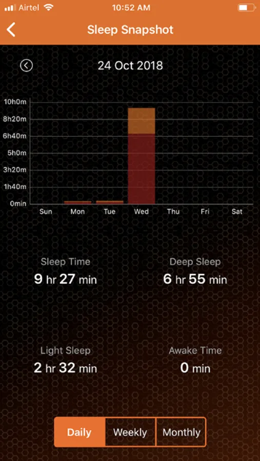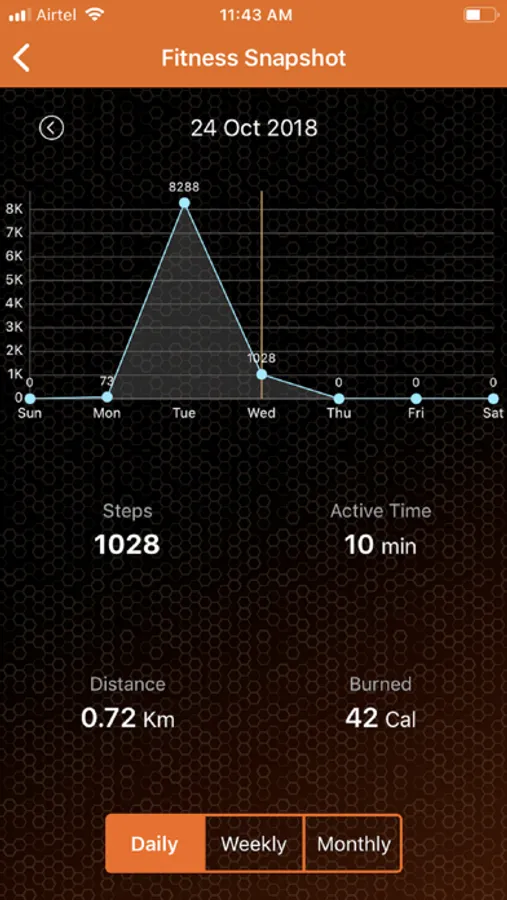 - Tracks user’s daily targets and progress over time for STEPS, DISTANCE, CALORIES BURNED, and SLEEP