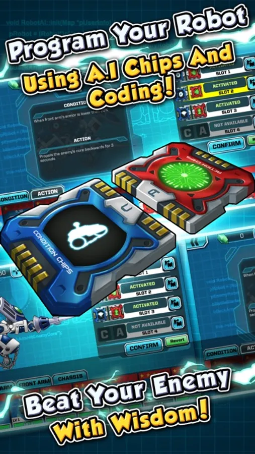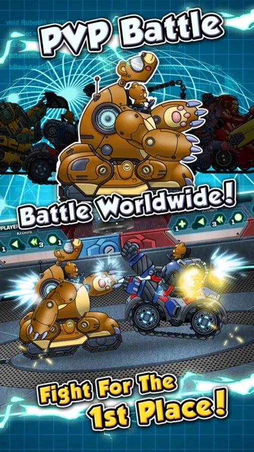 Build, tune and program your own cute combat robot to challenge other players! Easy block-based coding feature lets you set up your A.I.! Watch amazing robot battles!