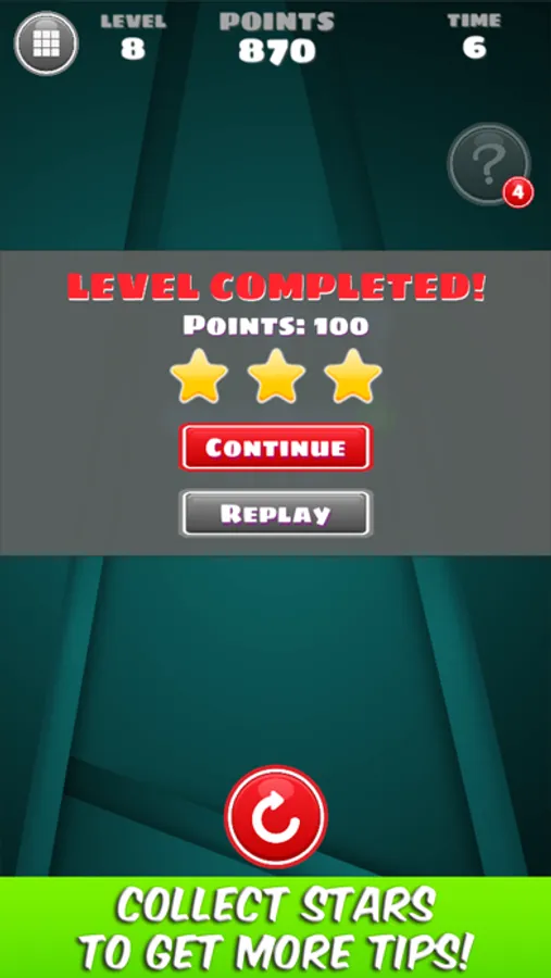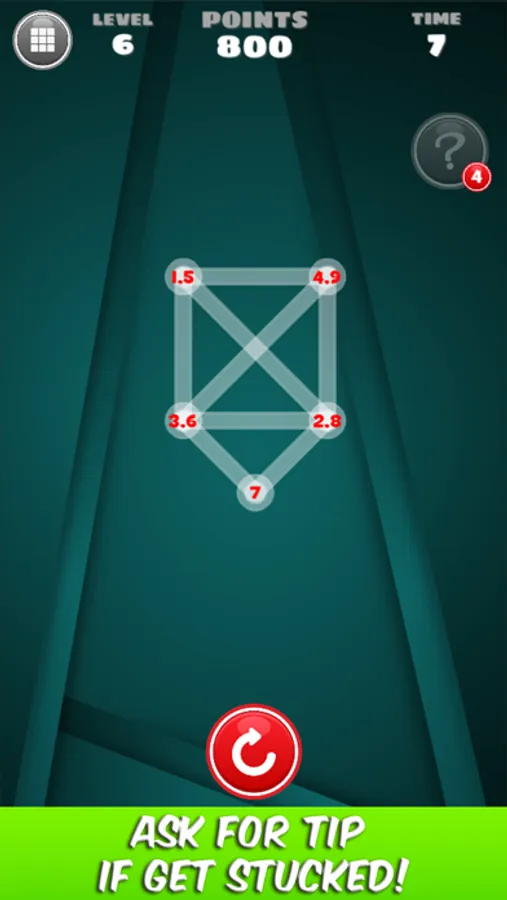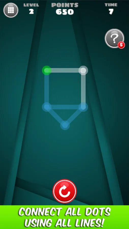 Connect all of the lines by tapping each dot. Be careful though because you can only use each line once. To complete a puzzle, you must connect all of the dots without repeating a line. If you repeat a line, you must start over. Stars are awarded based on how fast you complete each brain training puzzle.