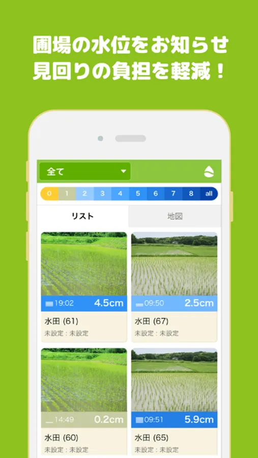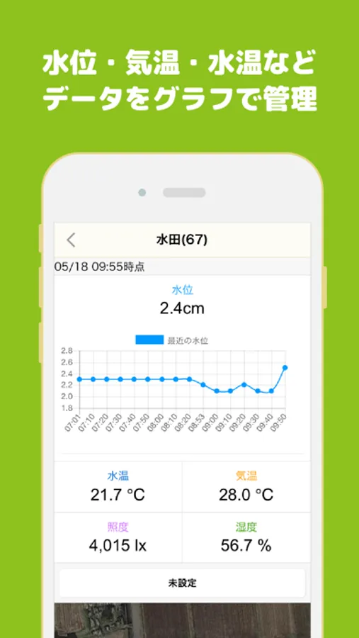 圃場の水位、水温を計測することができ、あなたの農作業をサポートします。