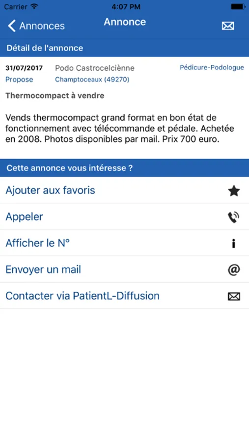 Application dédiée à la diffusion et à la consultation des petites annonces pour les professionnels de santé