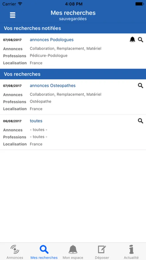 Ce dernier vous permet de mettre de coté des annonces, de créer des critères de recherches et d'être notifié par mail, push lorsqu'une annonce correspond à vos critères.