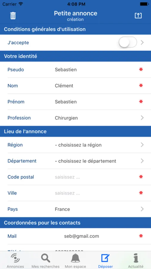 Le dépôt est simple et rapide depuis l'application