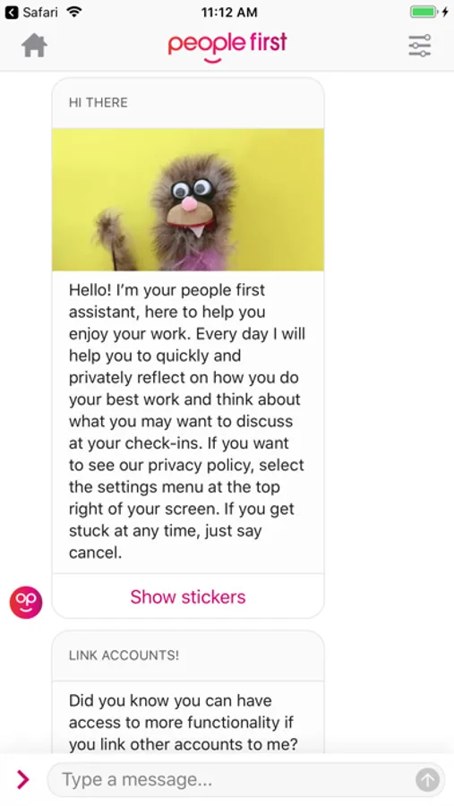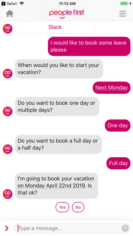 The people first Chatbot is your engaging, personal work assistant who helps you stay in the flow of your working day.