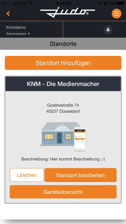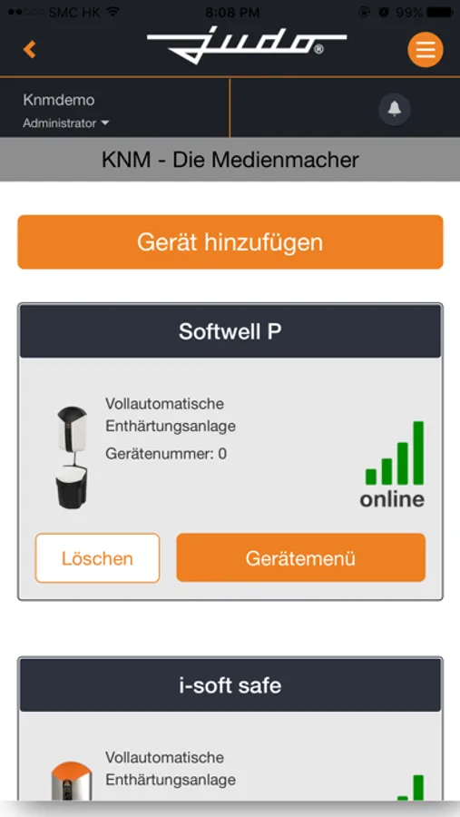 Sie besitzen mehrere JUDO Produkte, die Sie über die JU-Control App steuern möchten? Zum Beispiel als Vermieter, der verschiedene Objekte betreibt? Die einzelnen Geräte lassen sich ganz einfach in die App einbinden. Die Oberfläche kann so angepasst werden, dass Sie alle Geräte im Überblick haben und direkt anwählen können.
