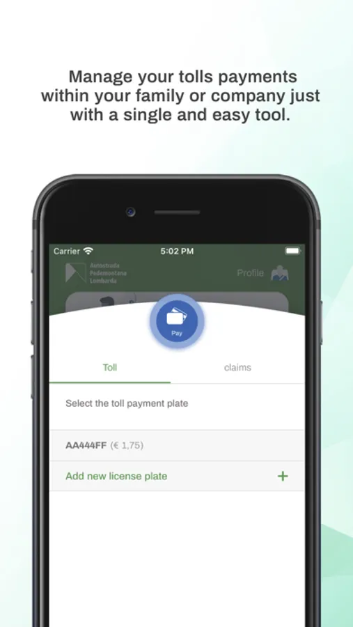 Enter a few essential data on the first access and your app will automatically recognize your profiles and associated vehicle license plates. You can make payment via Credit Card or Prepaid Card quickly and at any time.