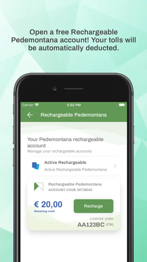 Now you can manage your tolls, payment prompts, and charge the electronic purse of your "Rechargeable Pedemontana" directly from your smartphone or tablet.