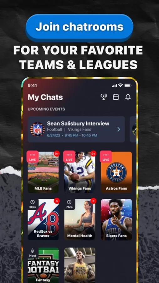 • LIVE Video Streams - Become the sports podcast host you always dreamed of being – no fancy equipment needed! Interact with your viewers in real-time as they try to figure out if you're a sports genius or just another passionate fan on the edge of a total meltdown. When you're done, your live stream will archive for all your friends and followers to rewatch whenever they want.