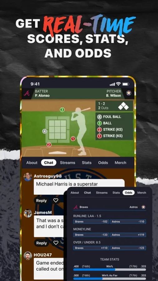 • Group Chatrooms - It's like having a never-ending virtual tailgate party, where you can discuss pre-game hype, post-game analysis, breaking news, wild predictions, and maybe a friendly wager or two! Plus, with real-time scores, stats, and odds delivered straight into the chatroom, you'll always be in the loop.