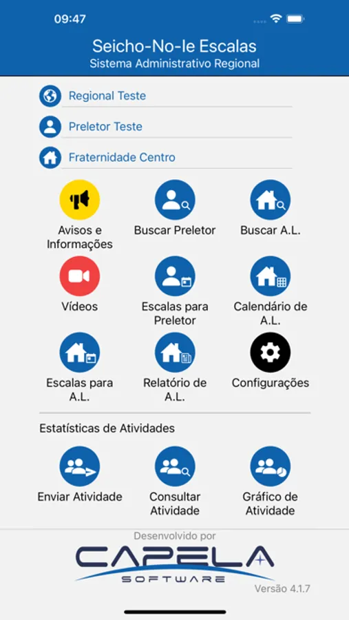 Aplicativo ligado ao Sistema Administrativo Regional, desenvolvido pela Capela Software, para auxiliar os Preletores e Presidentes de Associações Locais com diversas informações como: