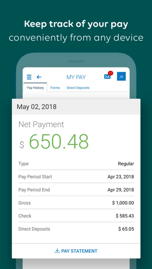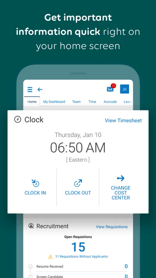 Whether you’re on a job site, on the road, at home, or simply on the move, you can get to what you need right from your mobile device. Clock in or out of a shift, check your pay, request time off, enroll in benefits, or handle any other similar tasks in moments.