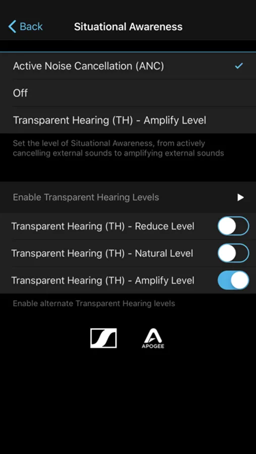 - With the Situational Awareness setting, turn on Active Noise Cancellation to tune out distractions and tune into your music and video. Or, turn on Transparent Hearing to blend your surroundings with your music for the perfect level of awareness. Enable alternate Transparent Hearing levels to adapt to different surroundings like concerts, urban settings or quiet spaces.