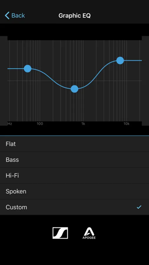 - Personalize your playback EQ response with two music settings, a spoken word setting, or your own EQ curve.