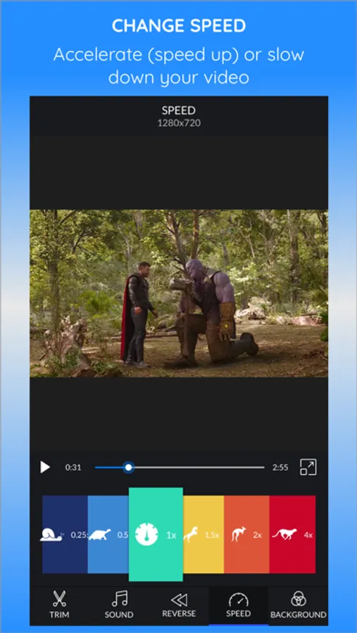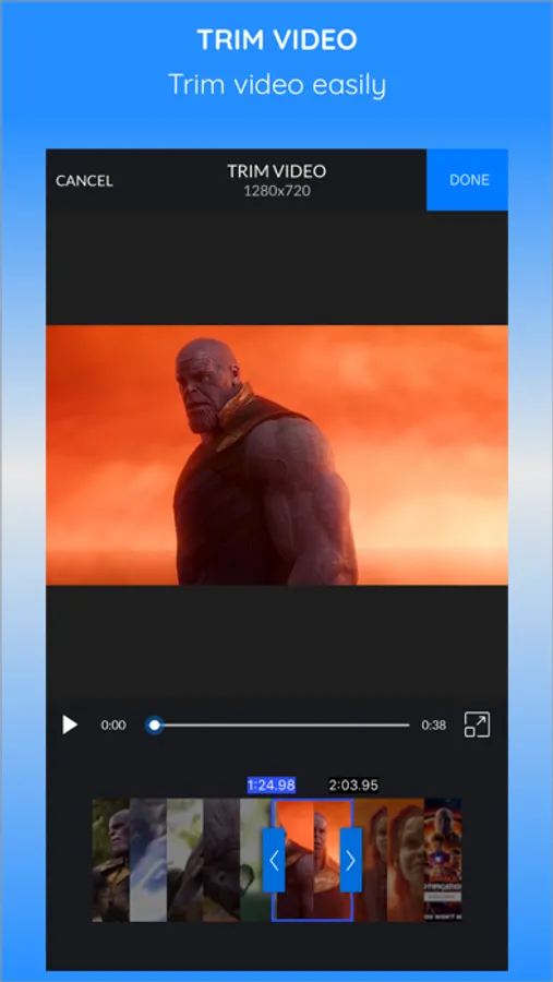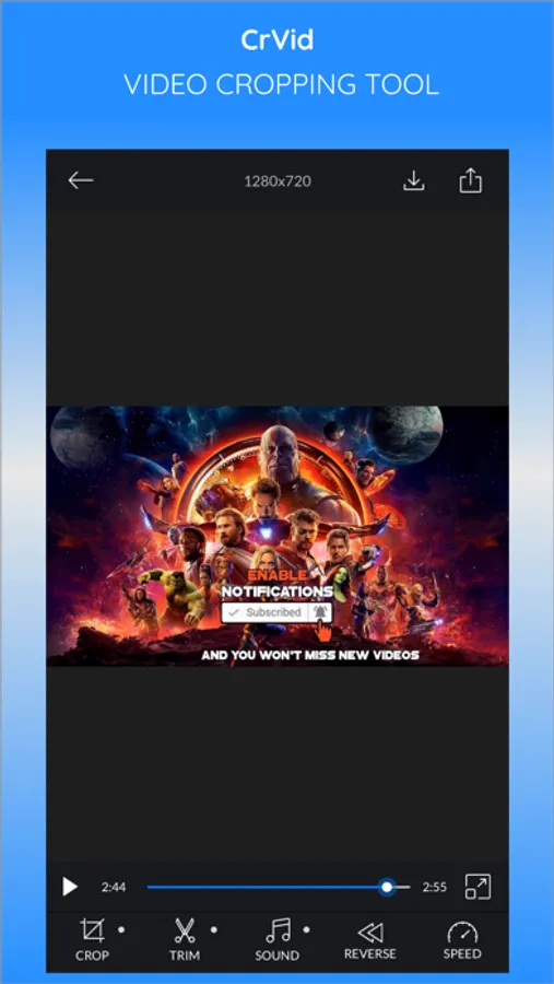 Just add your video to the app, resize and crop your video with a pinch of your fingers, save it to the camera roll or share it on other apps, Facebook, Instagram, Email,...