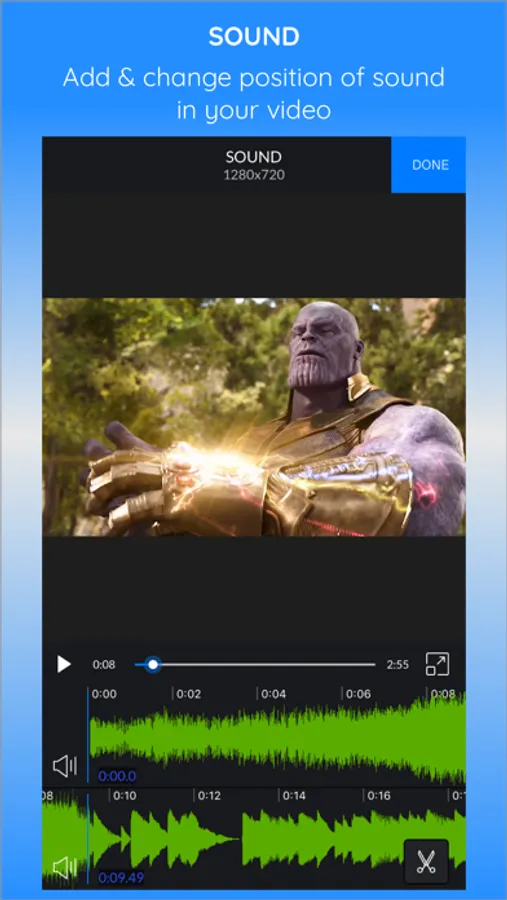 You can position video’s soundtrack easily or replace it with a song from your library.