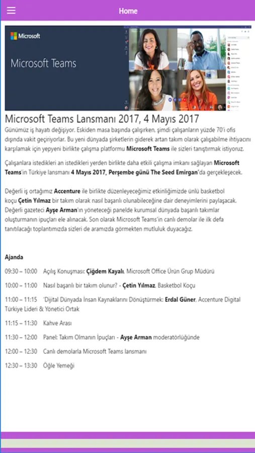 In cooperation with Accenture, our esteemed business partner, Cetin Yilmaz will share his experiences on how to be successful as a team. Distinguished journalist Ayşe Arman will direct the clues to create successful teams in the corporate world. Finally, we will be delighted to see you among us at the first meeting of Microsoft Teams with live demos.