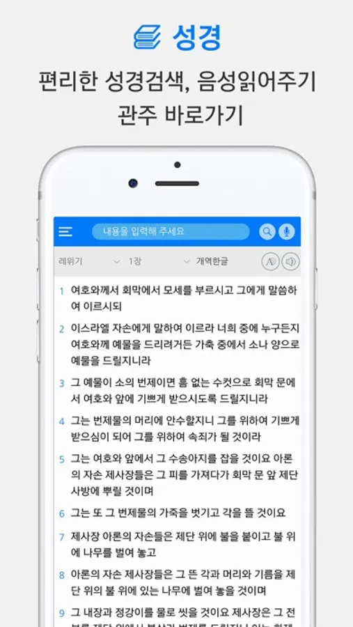 음성 검색으로 보다 쉽게 성경을 검색하실 수 있습니다.