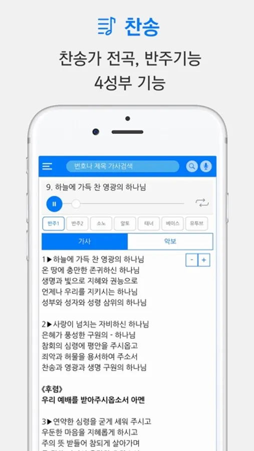 그리고 찬송가 전곡 4성부(소프라노, 엘토, 테너,베이스) 모두