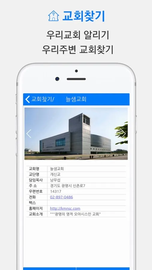 가능하며 교회로 전화 연결 홈페이지 연결등 제공