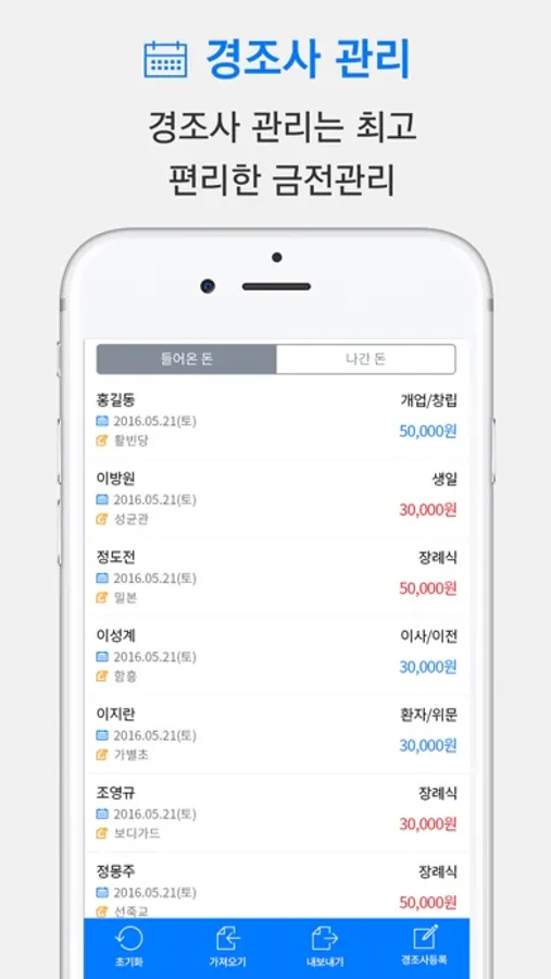 치루게 되는데 경조사에 들어오고 나가는 사항들