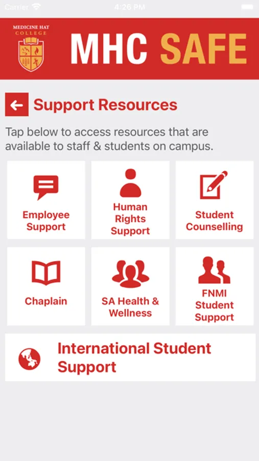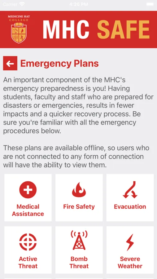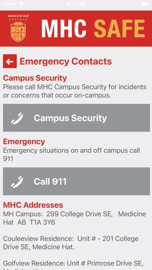 - Campus safety resources: access all important Medicine Hat College safety resources in one convenient app.