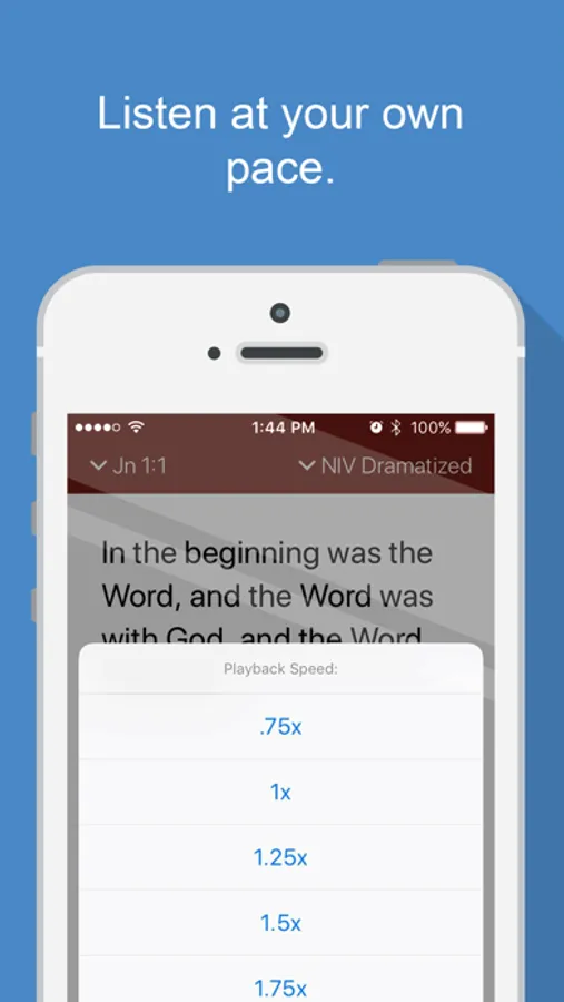 • Speed up or slow down playback to listen to the Bible at your own pace.