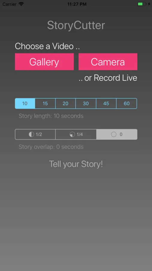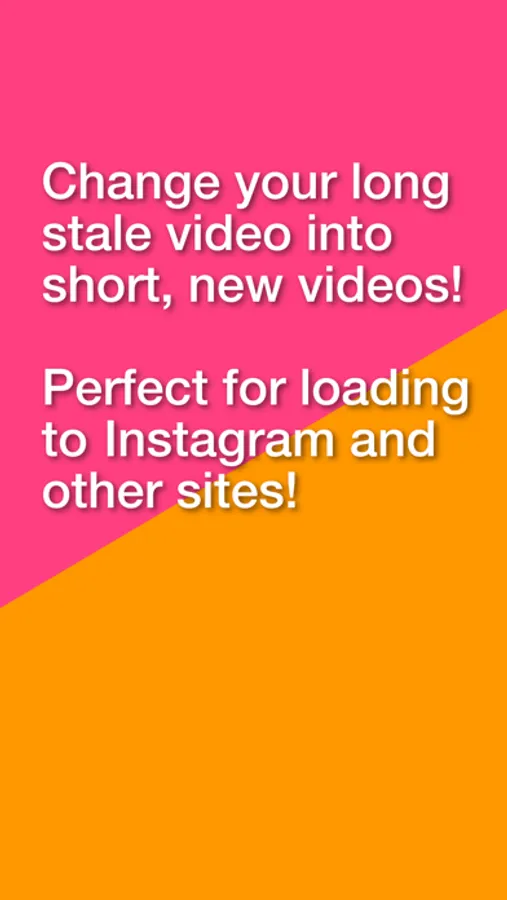 Change a stale, long video into a set of new, short videos! Or record a new video, and have it immediately ready for upload! Whether you're sharing on Instagram or Snapchat, StoryCutter will split your story into smaller chunks, perfect for uploading. The cuts can be seamless, or they can roll back a fraction of a second each time.