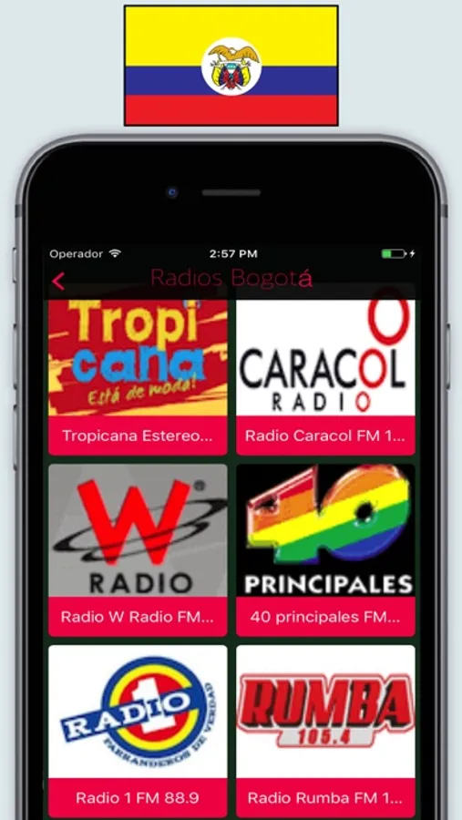 • Radio stations from Bogotá, Barranquilla, Bucaramanga, Cali, Cartagena, Medellin