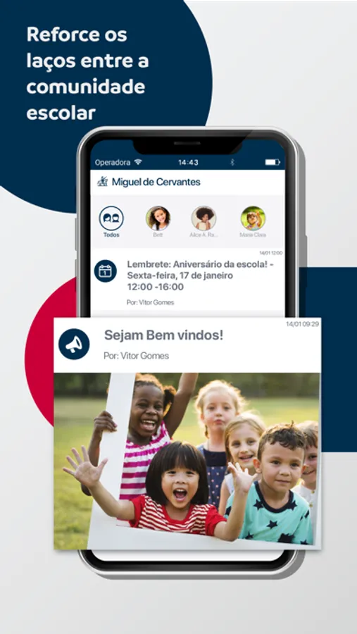 Com este aplicativo, os pais, responsáveis e professores poderão receber as últimas informações da escola, as notícias do dia a dia do seus filhos e o calendário de atividades escolares.