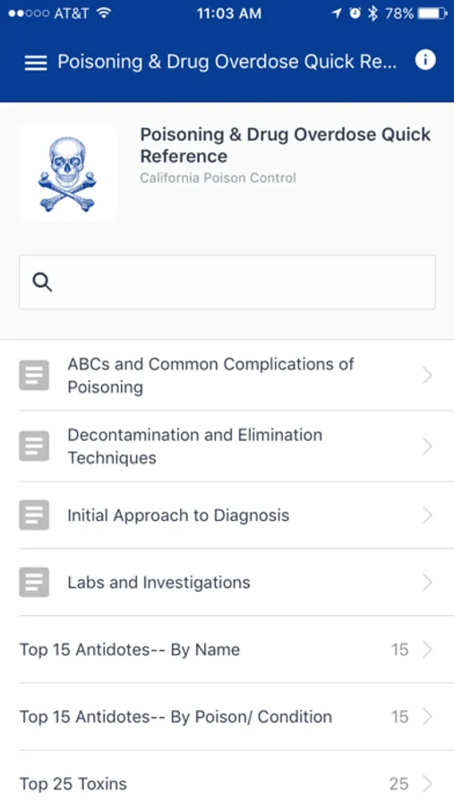 Created by the CA Poison Control System to help medical staff identify and treat patients with suspected poisoning or overdose. The collection includes the top 25 most commonly ingested toxins as well as essential information on the clinical presentation, diagnosis, and treatment for each type of toxin.
